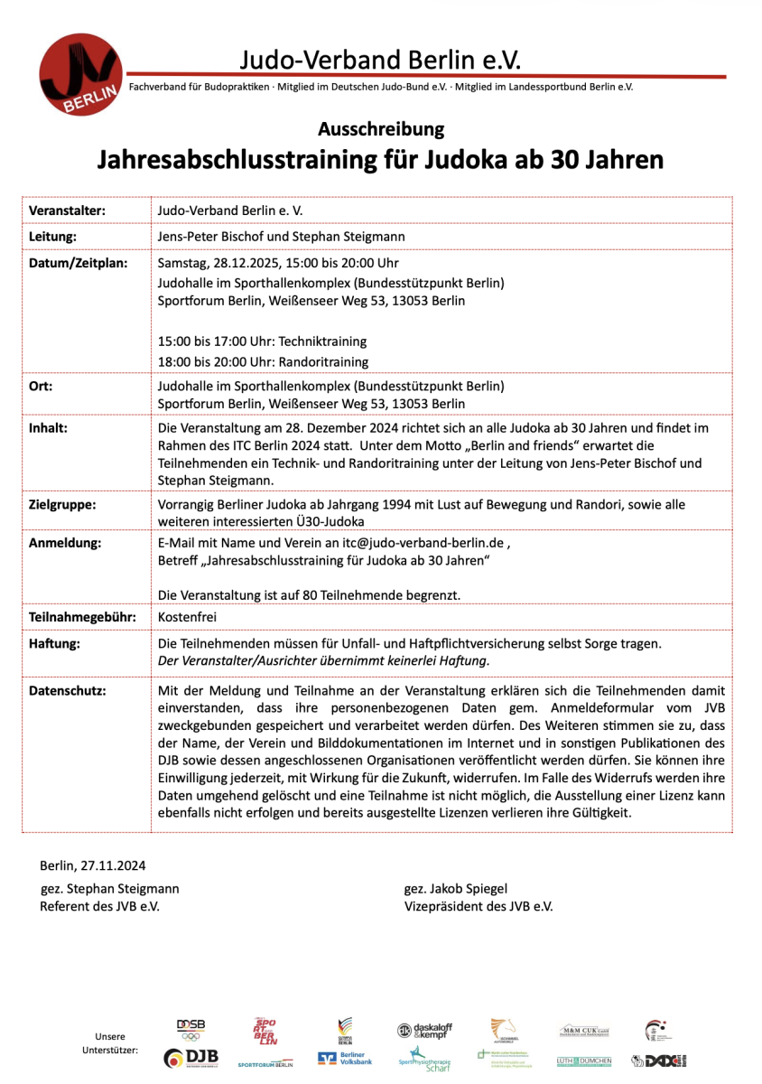 Zielgruppe: Vorrangig Berliner Judoka ab Jahrgang 1994 mit Lust auf