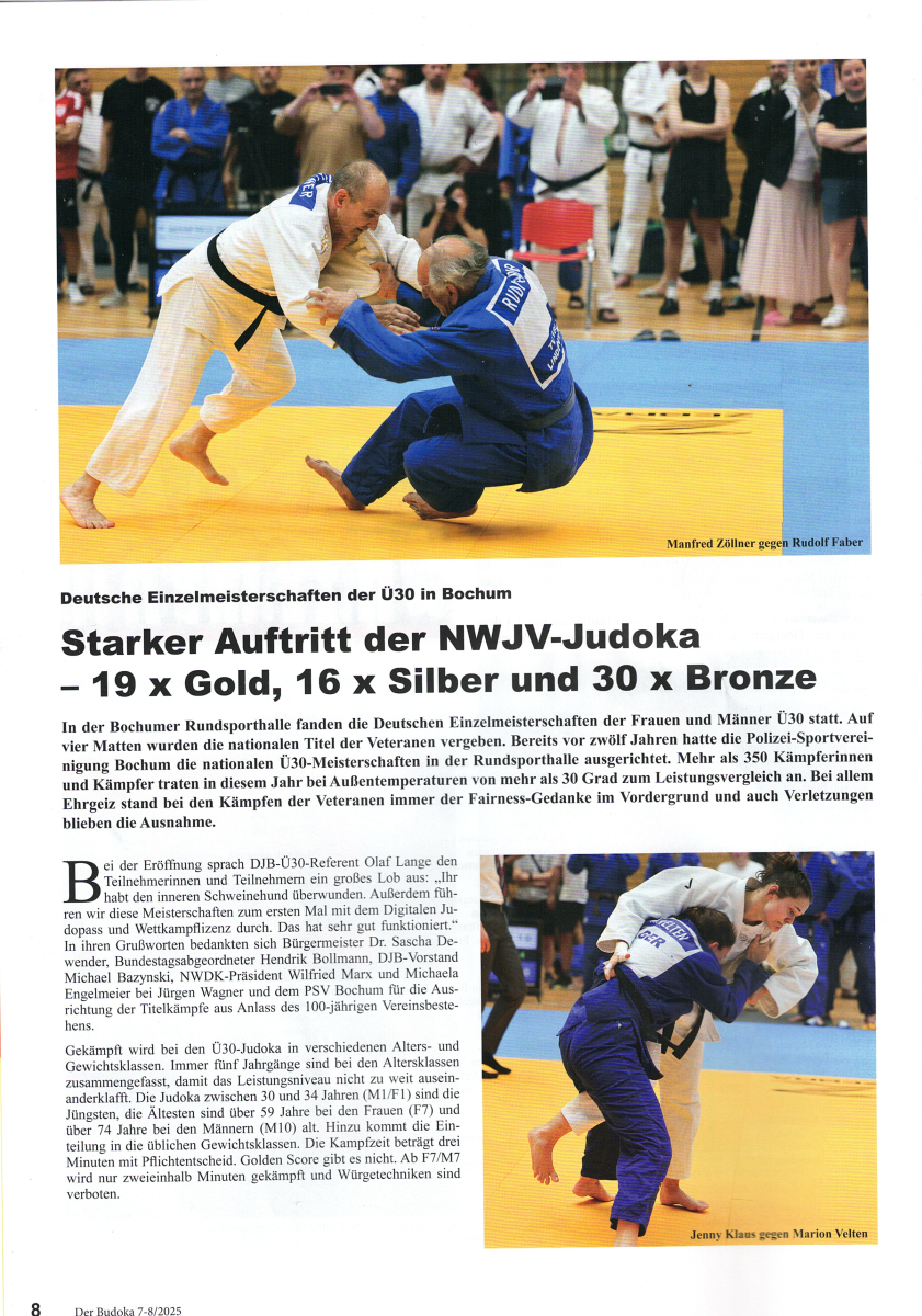 ich habe wieder die Jahre 2005 - 2025 der Deutschen Meisterschaft Ü30 im Judo ausgewertet. Es sind wieder großartige Ergebnisse von allen Athleten, Vereinen und Landesverbänden herausgekommen.